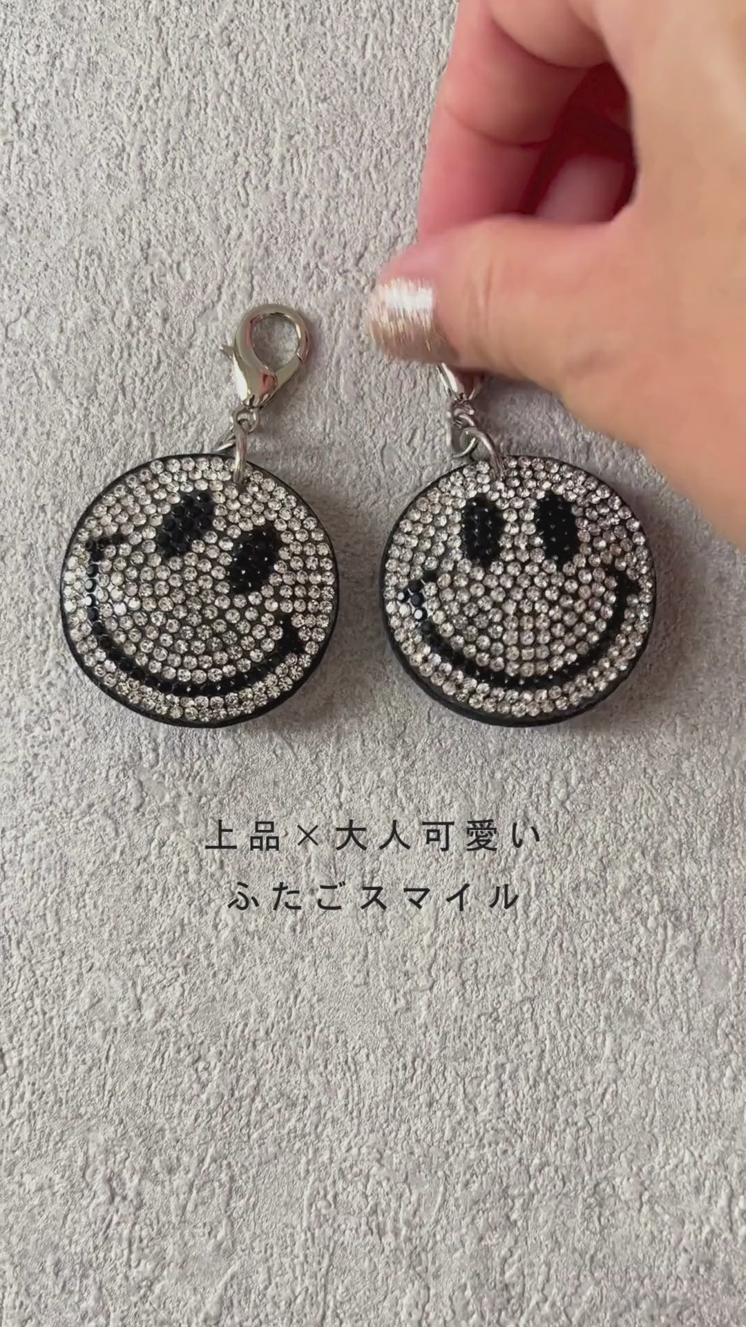 スマイルラインストーン(クリスタル)チャーム&タッセル&クローバー付 1427