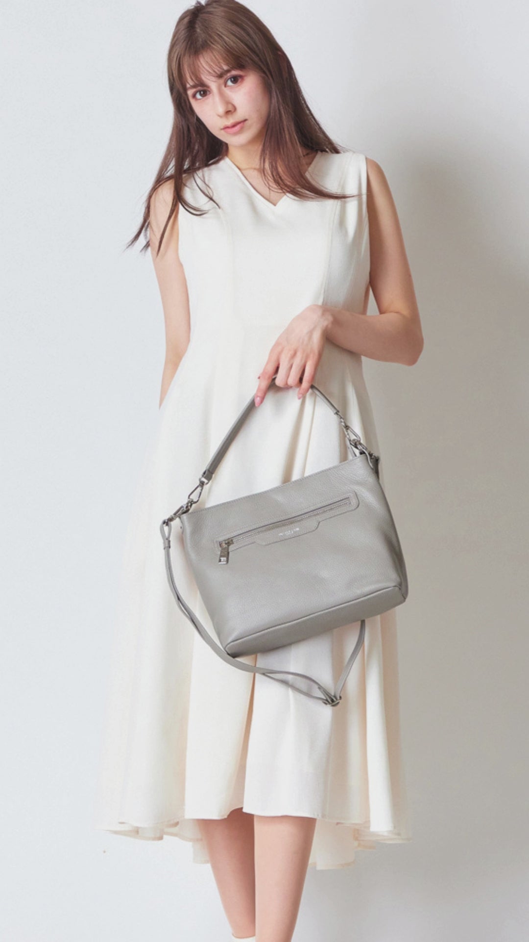セレモニーや式典など、装いに格を求められる場にもふさわしい、洗練された2WAYレザーバッグ。華美に頼らず、フォルムの美しさと上質な素材で魅せる一品です。約420g(ロングショルダー持ち)という軽さも、大人の女性にうれしいポイント。長時間の持ち歩きでも快適で、自然な所作を美しくサポートします。落ち着いたデザインは、フォーマルにも日常にも馴染み、シーンを選ばず活躍。シンプルながらも、持つ人の品格をそっと引き立てる存在感を放ちます。「きちんと感」と「心地よさ」。その両方を叶える、大人の女性のためのフォーマル対応バッグです。