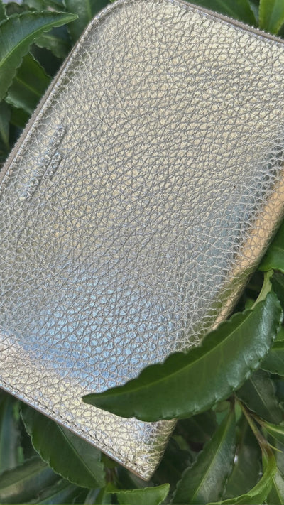 オンラインストア限定で登場した、人気の無地ゴールドミニ財布。いまも変わらず多くのお客様に選ばれ続けており、上品で華やかなデザインと使いやすさで支持されています。