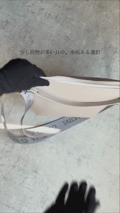 約12cmのマチと横長の台形フォルムで、荷物が入れやすく中身も見やすい設計。柔らかなレザーの質感も楽しめます