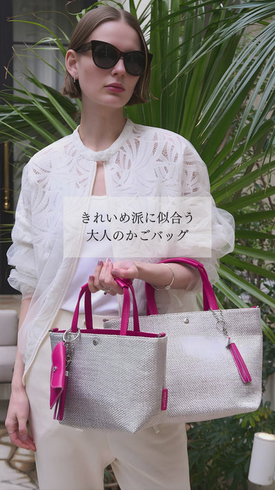 精緻に編み上げたラフィア調素材が、洗練と気品を纏うエレガントな佇まいを演出します。