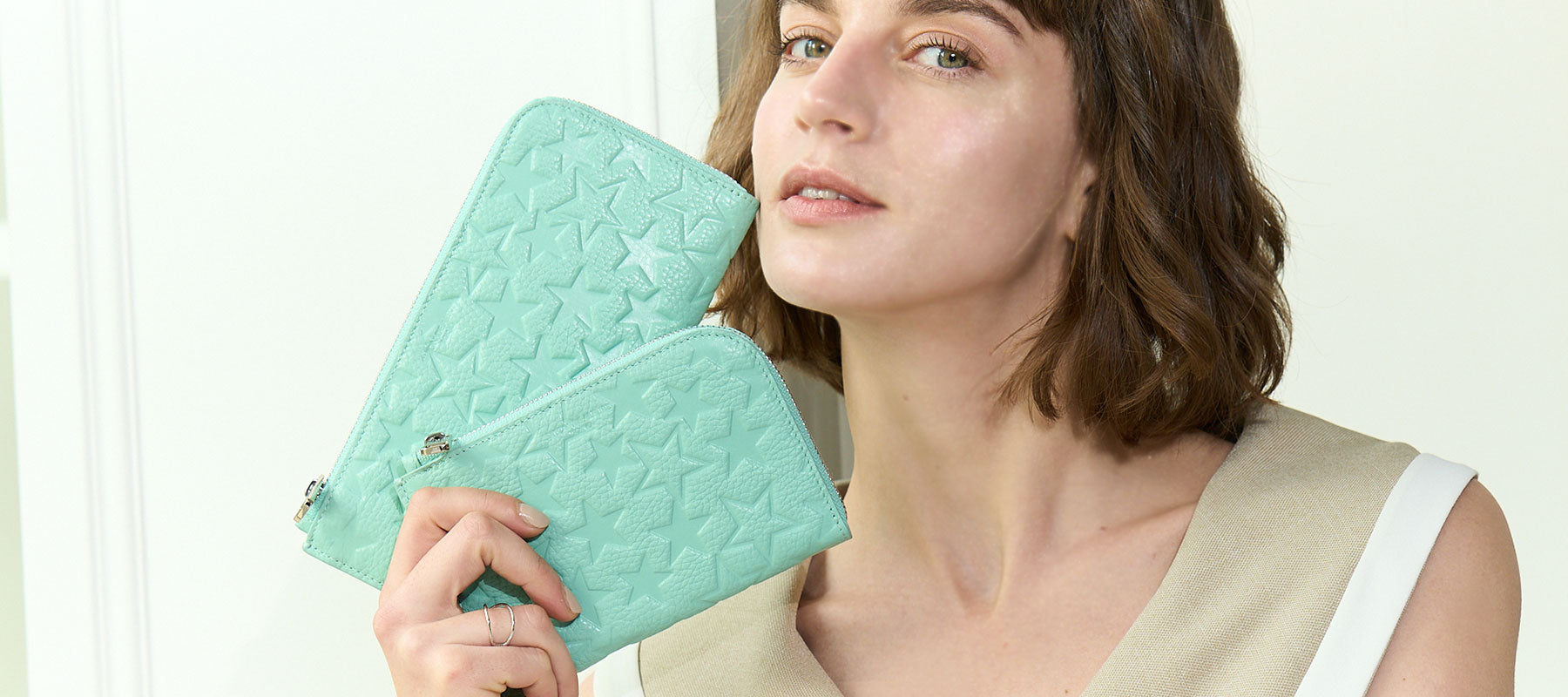レザーハンドル付き ホリゾンタルポシェット Mサイズ<スマイルなしVer.> 1413-set